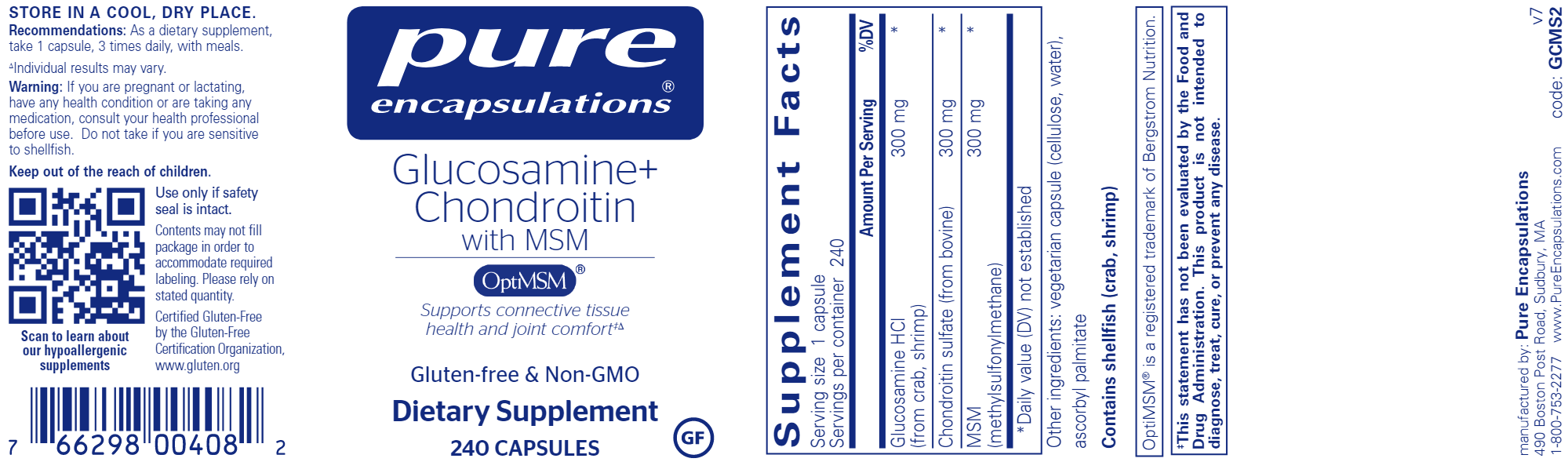 This glucosamine and chondroitin combination features sulfur-containing methylsulfonylmethane (MSM) for comprehensive nutrient coverage that supports cartilage matrix formation, connective tissue strength, and joint comfort. Glucosamine encourages the production of glycosaminoglycan chondroitin sulfate, which is a building block of cartilage and proteoglycans.