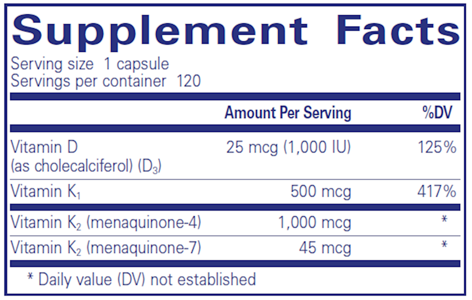This formula offers an optimal mix of vitamers K1, K2 (MK-4) and K2 (MK-7) as well as vitamin D to promote efficient calcium absorption. Research signifies that vitamin D strengthens MGP activity and the collaboration of vitamins K and D renders mutual assistance to maintain optimum bone and cardiovascular health. *