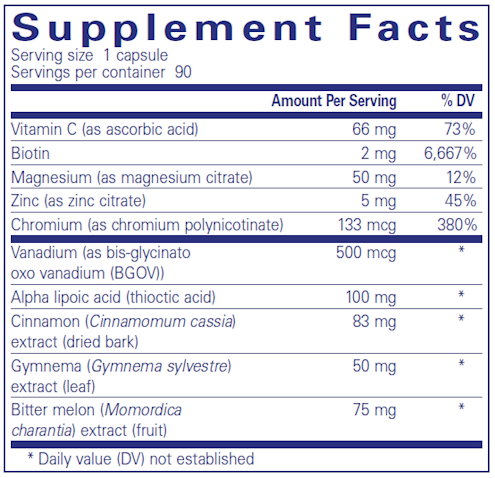 Minerals like chromium, magnesium, and zinc are linked to optimal glucose metabolism, made more effective with the addition of biotin. Bis-glycinato oxo vanadium is an organic complex of glycine and vanadium, which supports liver and muscle function, both of which help sustain healthy glucose metabolism.