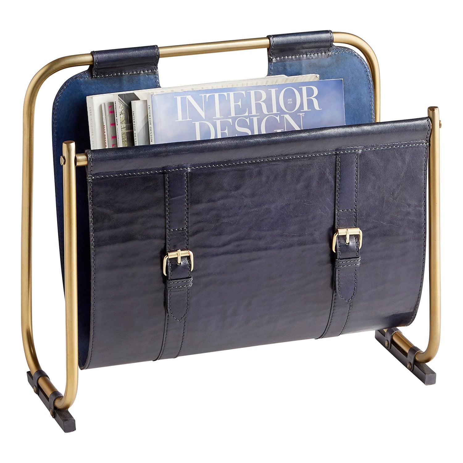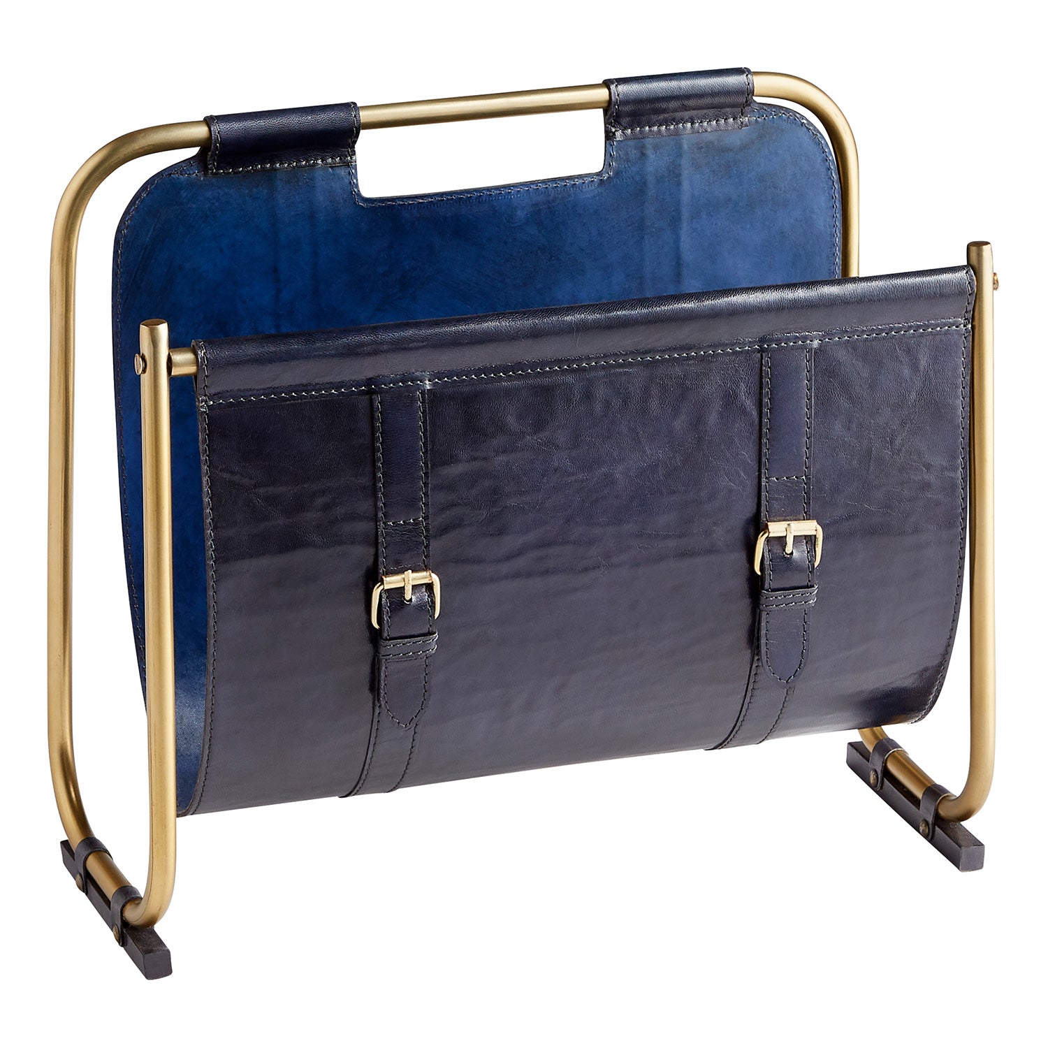 - Navy hand-painted leather upper.