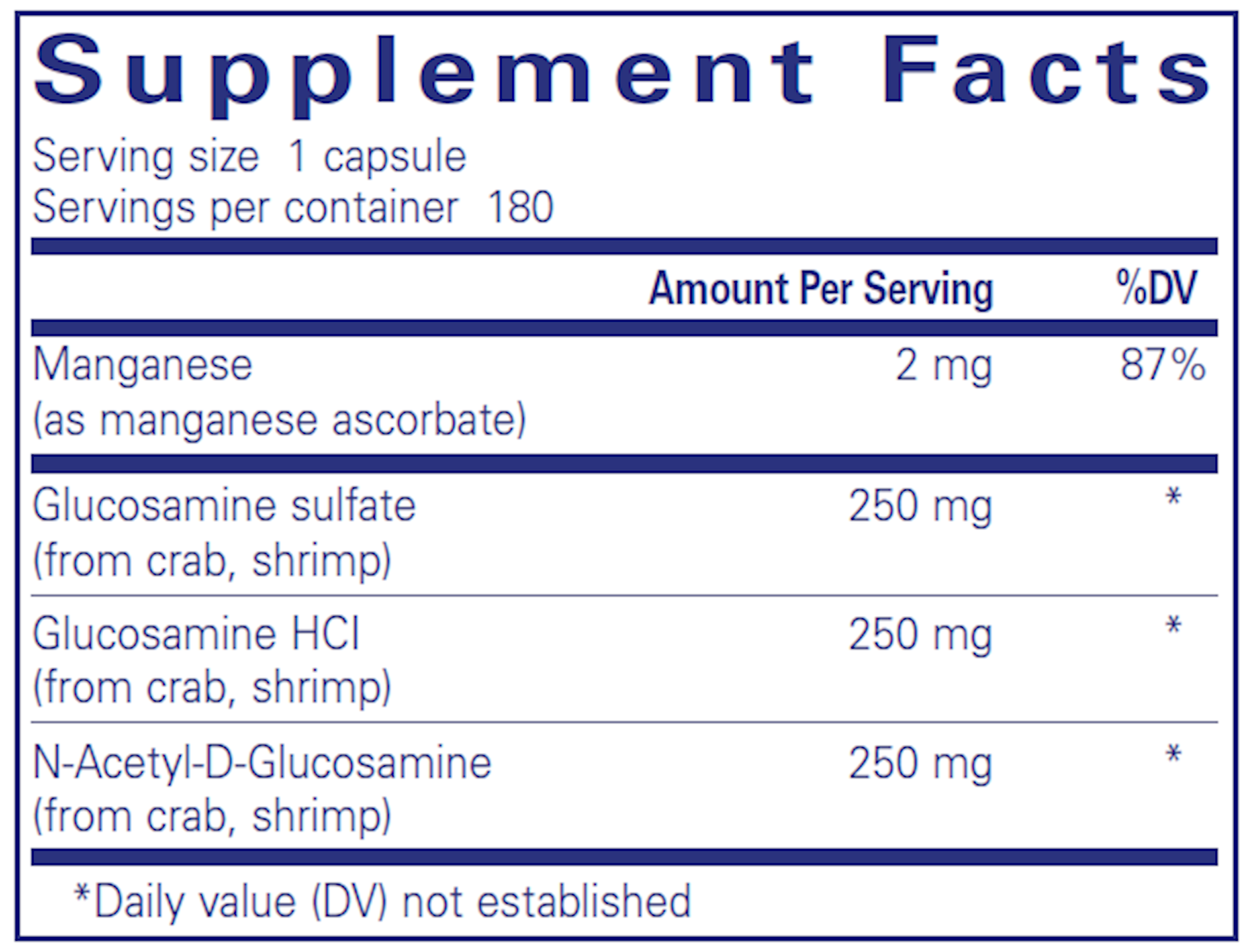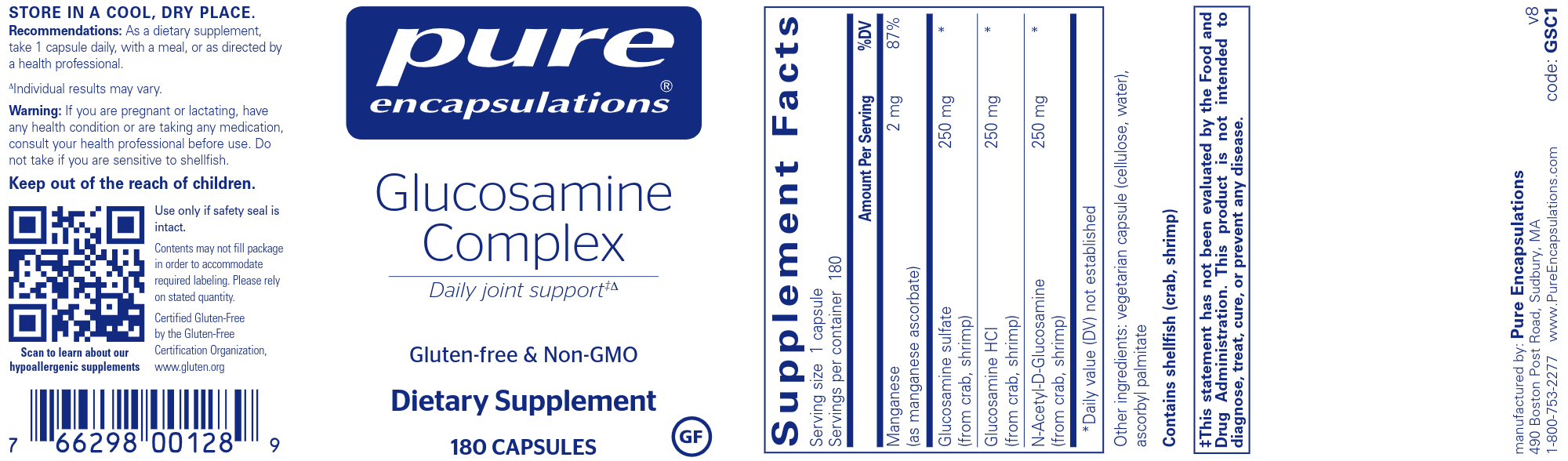 This formulation combines three distinct forms of glucosamine; glucosamine HCl, glucosamine sulfate, and n-acetyl-d-glucosamine. These compounds work together to create and maintain the collagen and connective tissue matrix, which develops into cartilage.*